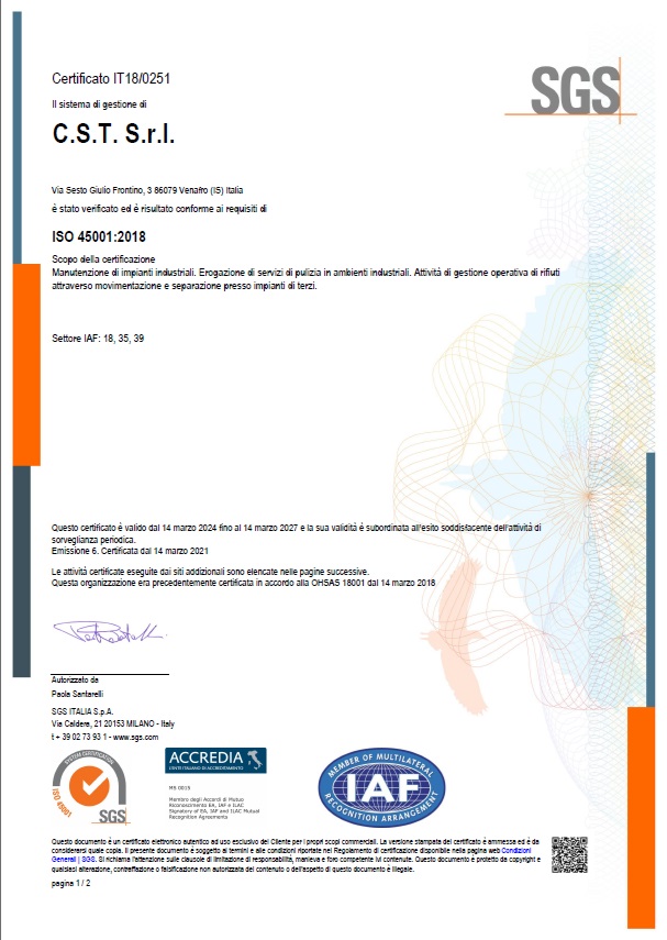 Con la certificazione ISO 45001, offriamo ai nostri clienti la certezza di lavorare con un partner che protegge le persone e rispetta le normative più avanzate in materia di sicurezza sul lavoro.