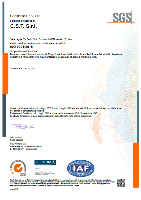 Questa certificazione dimostra che tutti i processi aziendali, dalla pianificazione degli interventi alla loro esecuzione, sono gestiti secondo criteri di efficienza, tracciabilità e miglioramento continuo.